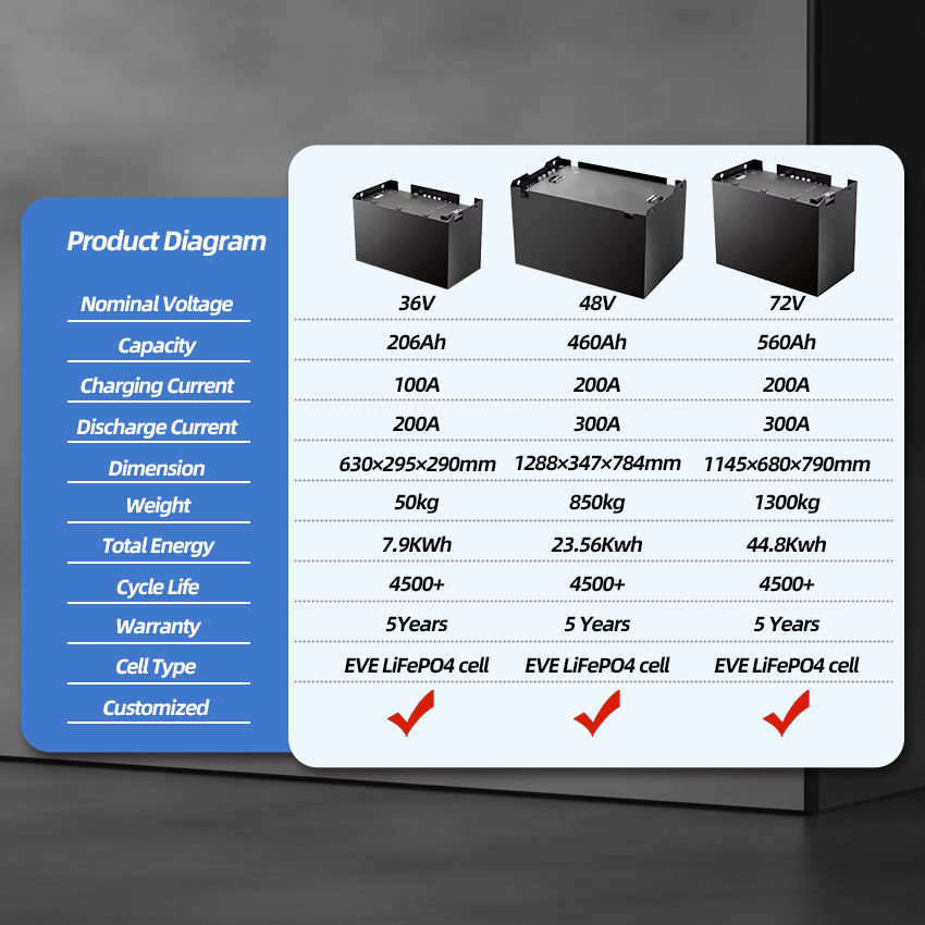 OEM ODM LiFePO4 24v 36v 48v 72v 280Ah Batterie au lithium-ion Lifepo4 Batterie au lithium à recharge Batterie pour chariot de golf